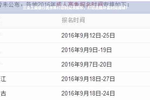 2、柜台办理:在三亚工商银行柜台办理打印流水账的时间视多种因素而定,若客户资料齐全且银行系统运作正常,大多数情况下可以即时打印,但如果遇到系统维护或高峰时段,可能需要等待一段时间。