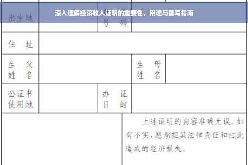 在当今社会,随着经济的发展和社会的进步,经济收入证明在我们的日常生活和工作中扮演着越来越重要的角色,无论是求职应聘、申请贷款,还是办理各类公共服务事项,经济收入证明都是一项重要的证明材料,本文将详细解析经济收入证明的重要性,以及其在实际应用中的多种用途。