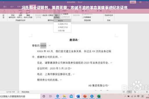这份关于冯氏烈士的证明书写实详尽且富有感情色彩,通过这篇文章我们深刻理解了冯氏烈士的生平事迹以及他对国家民族的贡献和牺牲精神,他的精神将永远激励我们为实现中华民族伟大复兴而努力奋斗!让我们共同铭记历史时刻!