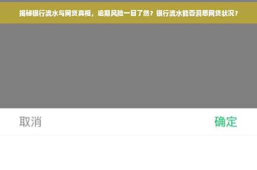 摘要:本文将探讨银行流水与网贷之间的关系,揭示其中的真相。我们将讨论银行流水能否揭示个人是否涉及网贷逾期。读者将了解到通过银行流水记录,某些网贷情况可能会被识别出来。但具体能否确定逾期情况还需结合其他因素。本文旨在提醒公众在涉及金融交易时保持谨慎,保护个人隐私和财产安全。