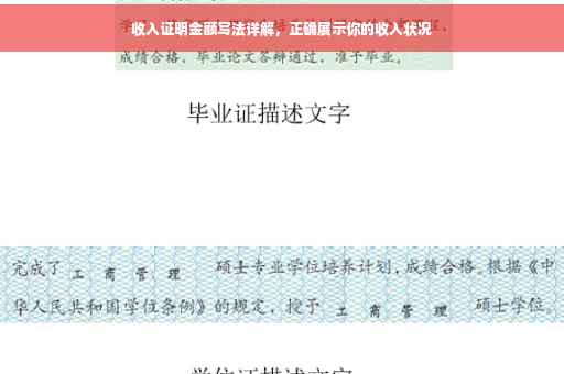 摘要:本文将详细介绍收入证明金额的正确写法,帮助你准确展示个人收入状况。通过本文,你将了解如何正确填写收入证明的金额部分,以确保信息清晰、准确。文章将涵盖收入证明的重要性、金额写法的注意事项以及正确展示收入状况的方法。阅读本文,你将能够了解如何规范、准确地开具收入证明,为你的财务事项提供有力支持。
