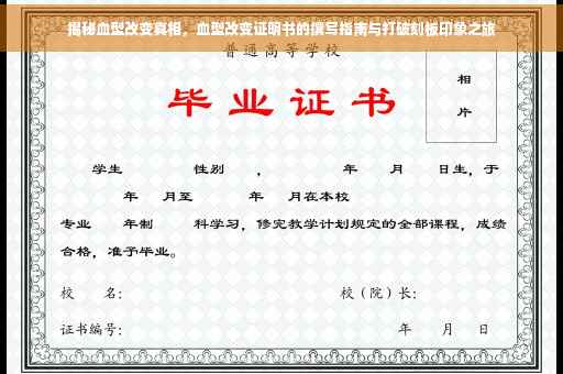 摘要:血型改变证明书是用于证明个人血型发生变化的官方文件。本文将揭示如何正确书写血型改变证明书,打破关于血型变化的刻板印象。本文将介绍血型改变证明书的格式、内容要点以及注意事项,帮助读者了解如何准确、清晰地表达个人血型变化信息,以便在需要时提供有力的证据。