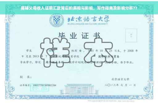 摘要:本文将探讨父母收入证明汇款背后的真相及其影响。文章将简要介绍父母收入证明汇款的概念,分析其在不同场景下的作用,并强调其可能存在的风险和问题。本文将提供关于如何撰写父母收入证明汇款的建议,以帮助读者更好地理解和应对这一问题。摘要字数在100-200字之间。