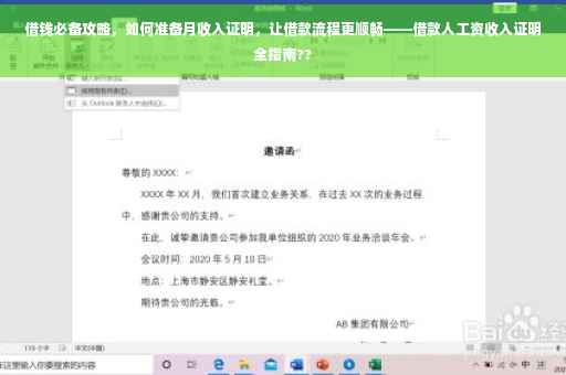 在现代社会,我们难免会遇到需要借钱的情况,无论是应对突发事件还是实现个人目标,了解如何借钱并为此准备充分的资料至关重要,月收入证明作为评估个人还款能力的重要依据,其准确性和完整性直接影响到借款的成败,本文将为你详细介绍如何准备一份有效的借钱月收入证明,助你顺利获得所需资金。