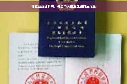 独立经营证明书是创业路上的一个重要伙伴,它见证了创业者的努力和付出,也为创业者的发展提供了有力支持,创业者应充分了解独立经营证明书的作用、办理流程、所需材料及注意事项,以便更好地应对创业过程中的挑战和机遇,在这个充满竞争和机遇的时代,愿每一位创业者都能凭借独立经营证明书,勇往直前,实现自己的创业梦想。