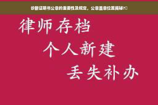 诊断证明书公章是诊断证明书的重要组成部分,具有法律效力、信誉保障和信息真实的作用,在使用过程中,患者应了解相关规定和注意事项,核实证明书的真实性和合法性,医疗机构应加强对公章的管理,确保公章使用的安全、规范和合法,通过共同努力,我们才能够维护医疗行业的信誉和秩序,保障公众的合法权益。