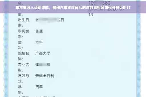 在当今社会,汽车已成为人们生活中不可或缺的交通工具,许多消费者为了购买心仪的汽车,选择通过贷款来实现,车主贷作为一种常见的汽车贷款方式,为广大车主提供了便利,本文将围绕车主贷收入证明这一主题,为您揭示汽车贷款背后的财务真相。