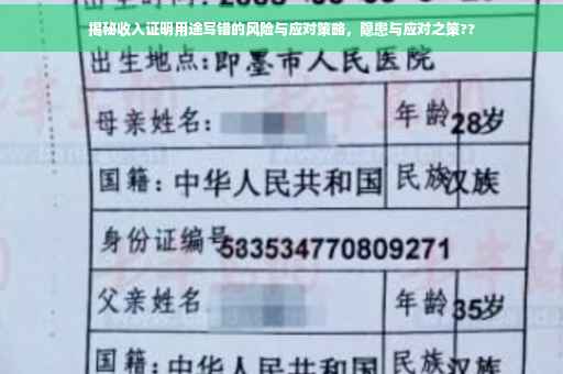 在当今社会,收入证明已成为许多场合的必备文件,无论是办理贷款、申请职位还是其他重要事务,它都扮演着举足轻重的角色,有时候我们在处理这些证明文件时,可能会因为粗心大意而导致用途写错,本文将深入探讨用途写错收入证明所带来的隐患,并为大家提供应对之策。