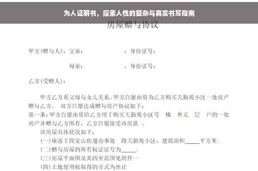 作为一个自媒体作者,我深知在这个信息爆炸的时代,真实的声音和深入人心的内容是人们渴望的,我要为大家带来一篇关于“为人证明书”的文章,通过一系列真实的故事和思考,带大家深入了解人性的复杂与真实。