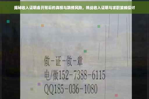 跳槽已成为职场中屡见不鲜的现象,为了寻求更好的工作机会和薪资待遇,许多人选择离开原有的工作岗位,迈向新的职业发展平台,在这个过程中,一些人为了顺利获得更高的薪资待遇或职位晋升,可能会采取虚开收入证明的手段,本文旨在深入探讨收入证明虚开背后的真相及其对职场和个人带来的影响,揭示跳槽背后的风险与挑战。