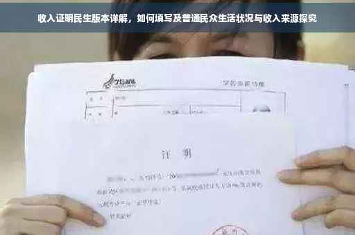 摘要:收入证明民生版本旨在揭示普通民众的真实生活状况和收入来源。填写时,应简洁明了地阐述个人的生活状况,包括就业情况、家庭状况等,并详细描述主要收入来源,如工资、兼职、投资等。确保信息真实可靠,以便更准确地反映民众的实际情况。这份证明对于我们了解民生状况具有重要意义。