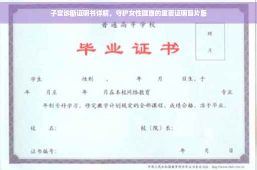 摘要:本文将详细介绍子宫诊断证明书的重要性及其功能,帮助女性更好地了解自身健康状况。通过子宫诊断证明书图片,深入了解诊断过程,为女性健康守护提供有力支持。文章旨在提高女性对子宫健康的关注度,及时发现并处理潜在的健康问题。