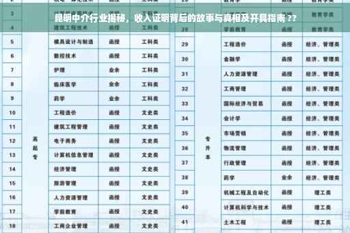 要了解昆明中介行业的收入证明真相,需从多个角度进行探究,除了与中介机构沟通、了解市场数据,还应参考相关统计数据、媒体报道等途径获取更全面的信息,关注行业动态和趋势也是了解行业真相的重要途径。