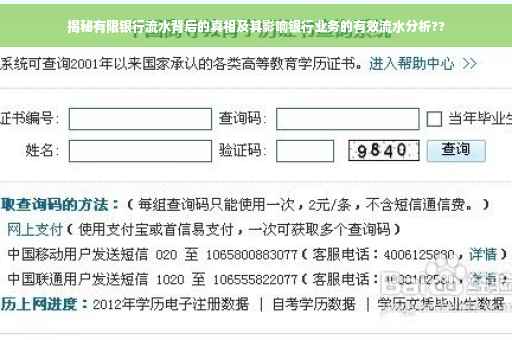 在当今社会,银行业务与我们息息相关,其中银行流水作为重要的金融记录之一,对于个人和企业都有着不可忽视的作用,近年来,“有限银行流水”这一概念逐渐受到关注,其背后隐藏的真相和影响究竟如何?本文将对此进行深入探讨。