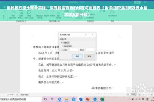 摘要:本文将揭示银行流水账单背后的秘密,深度解读其真相与重要性。针对银行流水账单中可能出现的异常情况,如账单被冻结等,提供解读指南。通过阅读本文,您将了解如何正确理解和使用银行流水账单,以及如何应对可能出现的问题。