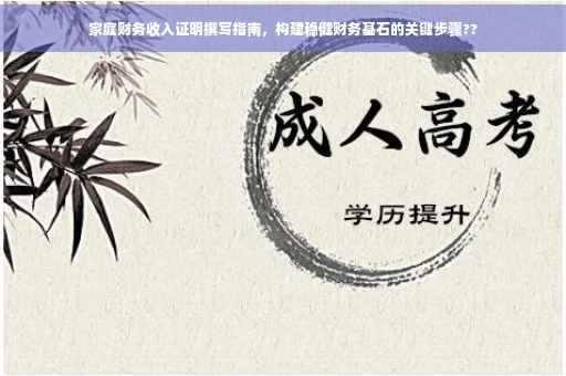 在当今社会,随着经济的繁荣和个人财务的日益复杂化,家庭财务收入证明成为了众多家庭关注的焦点,它不仅关乎日常生活的质量,更关乎家庭的未来规划和长远发展,本文将深入解析家庭财务收入证明的重要性,并探讨如何通过合理的规划和执行,为家庭构建稳健的财务基石。