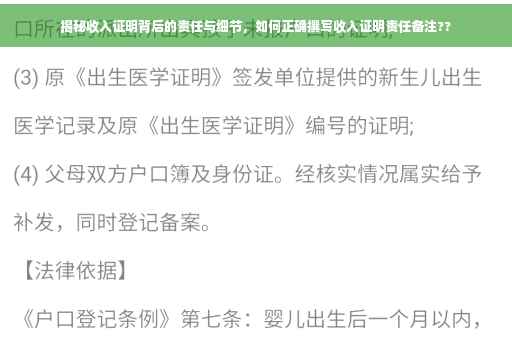 在当今社会,随着就业竞争的日益激烈,收入证明成为了求职过程中的一项重要资料,无论是求职、贷款还是办理信用卡,收入证明都是评估个人经济状况的关键依据,很多人对收入证明背后的责任与备注细节并不了解,本文将对此进行详细介绍。