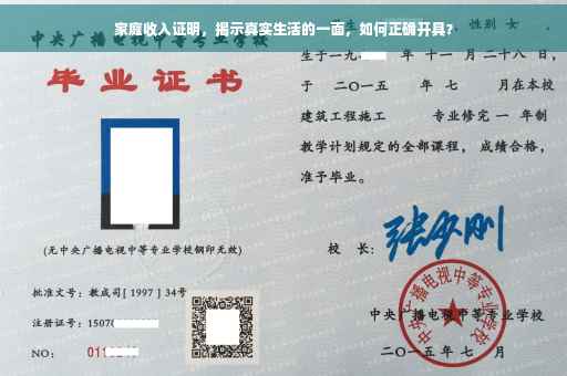 摘要:家庭的收入证明是展示真实生活状况的重要文件,通常用于贷款申请、房屋租赁等场合。开具收入证明需要准备相关材料,如身份证、工作证明、银行流水等。证明内容需真实准确地反映家庭成员的收入情况,包括工资、奖金、津贴等。了解开具流程和要求,确保证明的有效性,是展示家庭实际经济状况的关键。