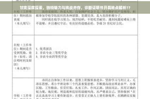 摘要:甘肃深度探索揭示其独特魅力,包括丰富的历史文化和自然景观。甘肃也面临诸多挑战,如经济发展、生态保护等。诊断证明书一般需在正规医院或医疗机构开具。本文将带你领略甘肃的魅力,同时关注其面临的挑战,探寻发展之路。
