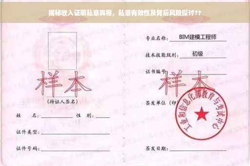 摘要:收入证明刻私章是否有效,背后隐藏着真相。一些人为了应对某些需求,可能会选择私刻印章制作虚假收入证明。这种行为存在法律风险,可能涉及伪造公文印章等违法行为。建议公众谨慎对待收入证明,遵守相关法律法规,确保个人信息的真实性和合法性。