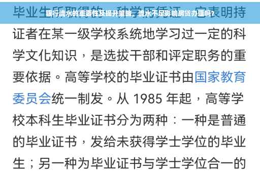 摘要:银行流水在办理房贷过程中具有关键作用,它反映了借款人的经济状况和还款能力。如果银行流水不足,可能导致房贷申请被拒绝。提升银行流水至关重要。可以通过增加定期存款、合理规划支出、提高收入稳定性等方法改善银行流水。了解银行流水的要求和标准,提前做好准备,有助于提高房贷申请的成功率。