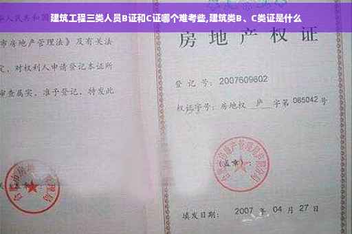 B证指的是项目经理级别应具备的安全员资格。C证指的是专职安全生产管理人员的安全员资格。建筑工程师分类:工民建工程师、建筑工程师、建筑施工工程师、地质勘测工程师、建筑预算工程师、建筑管理工程师、道路与桥梁工程师、土木工程工程师、市政工程师、土建工程师、土建结构工程师、造价工程师、建筑监理工程师、路桥工程师等 建筑行业从事建筑施工技术的相关证书分类: ①施工员②资料员③安全员④质量员⑤材料员⑥监理员安全员又分为:A类、B类、C类安全员。