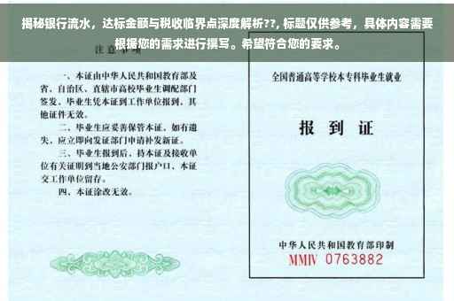 摘要:银行流水的重要性日益凸显,但具体达到多少才算达标,需结合个人或企业的实际情况而定。本文深入解析银行流水概念及其重要性,同时介绍银行流水与税收之间的关系。通过阅读本文,您将了解银行流水的标准以及如何合理规划和利用银行流水,从而更好地管理个人或企业的财务状况。