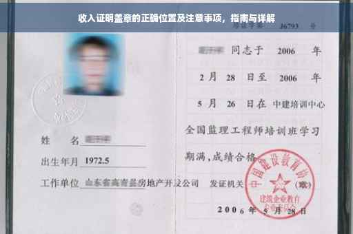 摘要:收入证明盖章应盖在证明文件的右下角或指定位置,确保清晰可见且符合规范。注意事项包括:确保印章真实有效,避免使用模糊或不清楚的印章;注意盖章时的证明文件内容是否真实准确,避免虚假证明;还需注意收入证明的开具时间、有效期等细节。在盖章过程中遵循相关规定,确保收入证明的有效性。