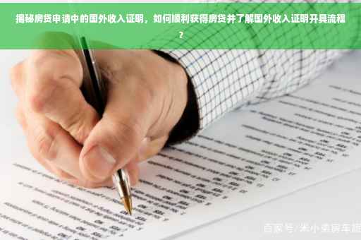 国外收入证明在房贷申请中扮演着重要的角色,借款人需提前准备好相关材料,确保材料的真实性和完整性,在申请过程中,保持与银行的沟通,及时了解审核进度和反馈,希望通过本文的介绍,读者能够更好地了解房贷申请中的国外收入证明问题,顺利获得房贷。