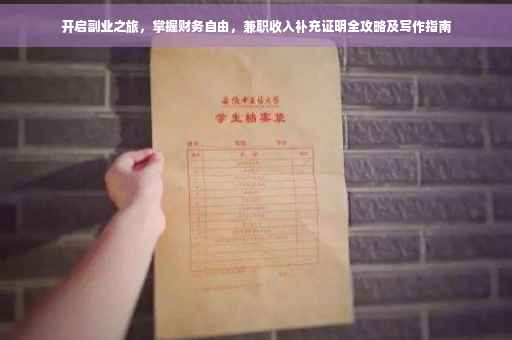 摘要:想要开启副业之旅并实现财务自由,兼职收入补充证明是关键一步。撰写补充证明时,需清晰列出副业收入来源、金额及纳税情况。副业选择应结合自身兴趣与专业技能,确保可持续发展并能获得收益。通过副业增加收入,实现经济独立,兼职收入补充证明是重要依据。遵循正确方法,你的副业之旅将更顺畅,财务自由更近一步。