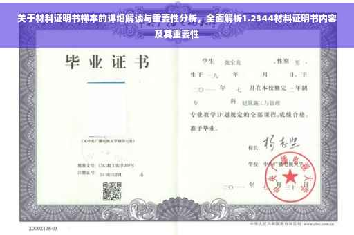 在当今社会,材料证明书在各个领域扮演着举足轻重的角色,1.2344材料证明书因其广泛的应用和重要性逐渐受到人们的关注,本文将详细介绍关于1.2344材料证明书的各个方面,帮助读者更好地了解其作用和价值。