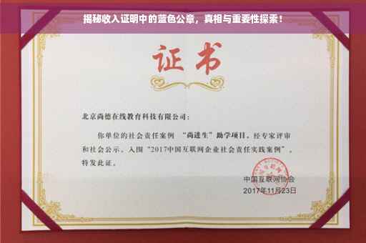 在求职、贷款、办理信用卡等场合,我们经常需要提交收入证明,而在这些收入证明中,最引人注目的除了手写签名之外,便是那一枚醒目的蓝色公章,这枚蓝色公章背后究竟隐藏着怎样的故事?它为何如此重要?本文将为您揭开收入证明上蓝色公章的真相与重要性。