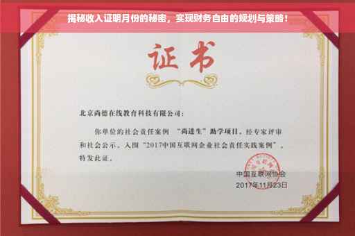 摘要:本文将揭示收入证明月份的秘密,指导读者如何合理规划财务,实现财务自由。文章将介绍如何正确填写收入证明月份,并强调合理规划的重要性。通过有效的财务规划,读者可以更好地掌控自己的经济状况,实现个人财务目标。本文旨在为追求财务自由的读者提供实用的建议和帮助。