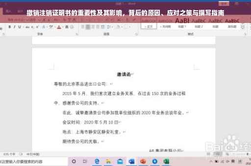 撤销注销证明书作为一种特殊的证明文件,在我们的生活和工作中扮演着重要角色,了解它的含义、重要性、应用场景、办理流程以及注意事项,对于个人和企业来说都至关重要,希望通过本文的介绍,读者能够更好地理解和运用撤销注销证明书,保障自己的权益,维护社会诚信体系。