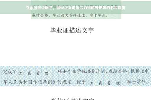 在当今社会,法治建设日益受到重视,立案报警证明书作为法律程序中的一环,扮演着维护社会公平正义的重要角色,本文将围绕立案报警证明书展开讨论,探究其作用、重要性以及申请流程等方面的内容,以期帮助公众更好地了解这一法律文件。