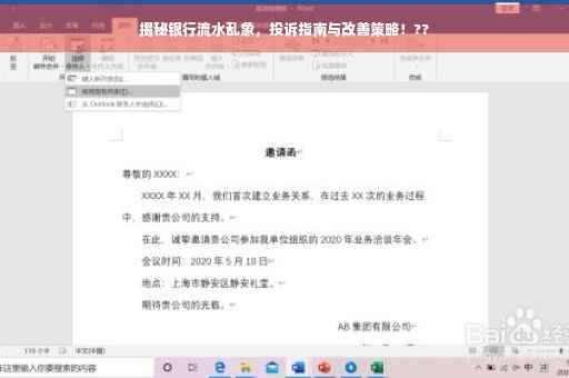 银行流水作为个人经济活动的记录,对于贷款申请、信用卡办理等金融事务至关重要,很多人在面对银行流水时,发现自己的流水“很烂”,导致无法顺利办理金融业务,银行流水为何会被形容为“很烂”?又该如何改善呢?本文将为您揭开银行流水的真相,并分享改善策略。