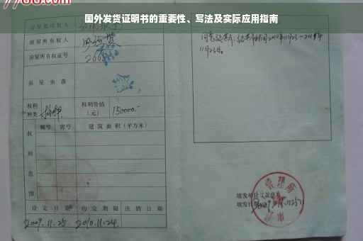 随着全球化的不断发展,国际贸易日益频繁,企业在海外市场的拓展成为常态,在这样的背景下,国外发货证明书的重要性逐渐凸显,本文将详细介绍国外发货证明书的作用、种类及应用场景,帮助读者更好地了解这一关键文件。