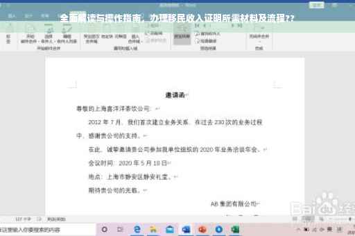 办理移民收入证明是移民过程中的重要环节,本文详细介绍了收入证明的作用、准备材料、注意事项、具体办理流程以及案例分析,以帮助读者顺利完成移民申请,实现自己的梦想。