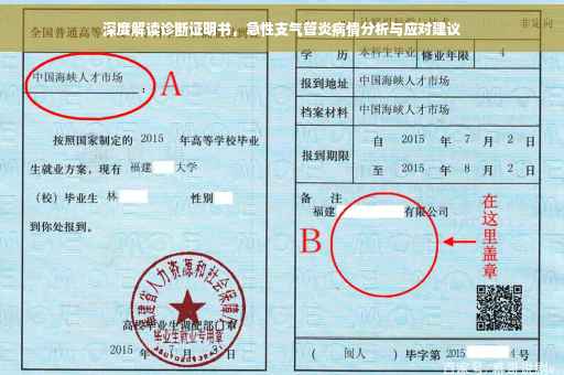 摘要:诊断证明书显示病情为急性支气管炎。该病状需引起注意,常见症状包括咳嗽、咳痰和呼吸急促等。应对建议包括遵循医生指导进行药物治疗,如使用抗生素和止咳药等。保持良好的生活习惯,如保持室内空气流通,避免吸烟和吸入有害气体,有助于病情恢复。请遵医嘱,及时诊治,以免病情加重。