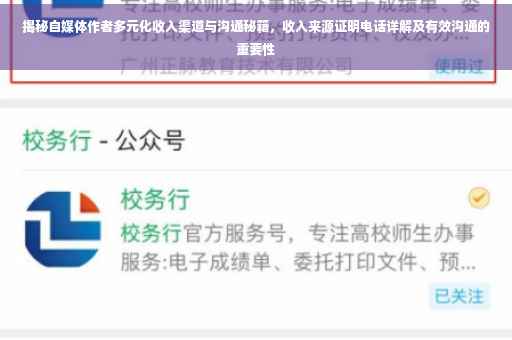 随着互联网的普及和社交媒体的发展,自媒体行业迅速崛起,越来越多的人投身于自媒体创作,作为自媒体作者,我们需要向外界证明自己的收入来源,以消除误解、获得信任并建立良好的个人品牌,本文将围绕自媒体作者收入来源证明电话这一主题,探讨自媒体收入来源的多元化、有效沟通的重要性以及应对质疑的策略。