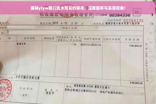 摘要:本文将揭示ylyw银行流水背后的秘密,深度解析银行流水的含义和作用。提供实用指南,帮助读者更好地理解和使用银行流水。阅读本文,你将了解到银行流水的重要性,以及如何有效利用银行流水来满足个人和企业的金融需求。