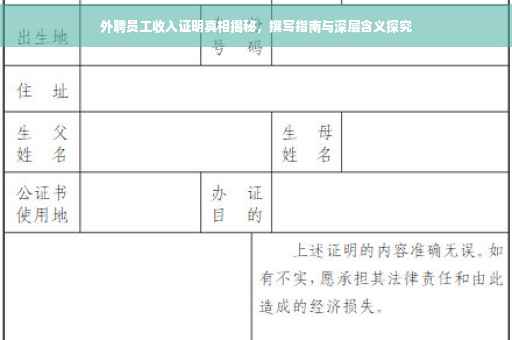 在当今社会,随着经济的发展和就业市场的多样化,越来越多的外聘员工成为了各行各业中不可或缺的力量,他们为企业注入了新的活力,同时也面临着诸多挑战,关于外聘员工的收入证明问题备受关注,本文将围绕这一主题展开讨论,揭示背后的真相与深层含义。