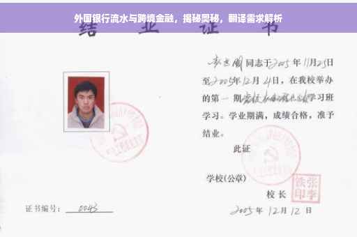 4、跨境金融业务办理:在办理跨境金融相关业务时,外国银行流水往往作为必要的证明材料,用于核实个人资金状况。