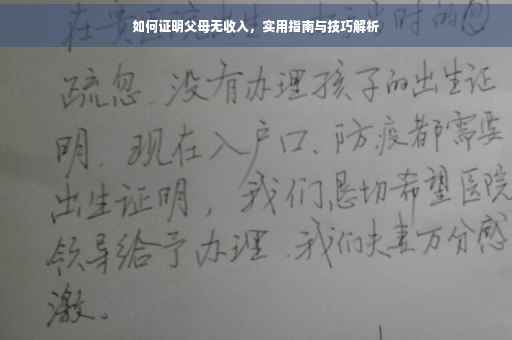 摘要:本文将全面解析如何证明父母无收入,提供实用建议。通过了解相关证明的重要性,包括财产分割、法律诉讼等场景,本文将指导读者准备相关文件,如收入证明、银行对账单等。还将介绍公证或律师协助的必要性。本文旨在帮助读者顺利获取父母无收入的证明,确保相关事务的顺利进行。