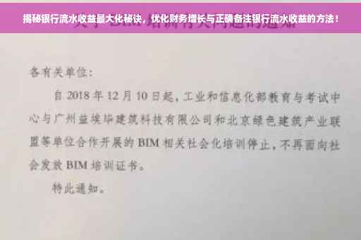 通过本文的阐述,您已经了解了银行流水收益的来源、如何最大化银行流水收益以及提高银行流水收益的策略和注意事项,要想实现银行流水收益的最大化,需要理性规划资金、精选金融产品、养成良好储蓄习惯、提升投资理财知识等,也要注重理性投资、防范风险、遵守法规等,希望本文能为您的财务增长提供有益的帮助。