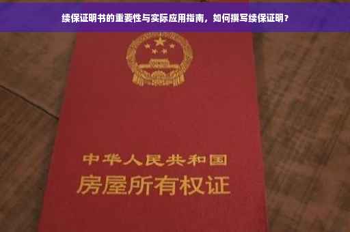 在当今社会,随着人们对个人权益的日益重视,续保证明书的重要性逐渐凸显,作为自媒体作者,我们有必要深入了解续保证明书的含义、作用及应用场景,以便更好地为广大读者提供相关信息和咨询服务,本文将详细介绍续保证明书的相关知识,帮助大家充分理解其重要性并学会如何正确、有效地使用。