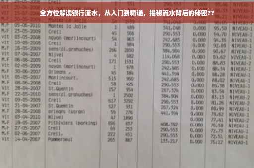摘要:本文将全方位解读银行流水背后的秘密,从入门到精通,带领读者了解银行流水的含义、作用及如何分析。通过本文,你将了解银行流水的重要性,及其在个人财务规划、信贷审批、企业经营等方面的应用。本文还将分享如何有效管理银行流水,以优化个人或企业的财务状况。