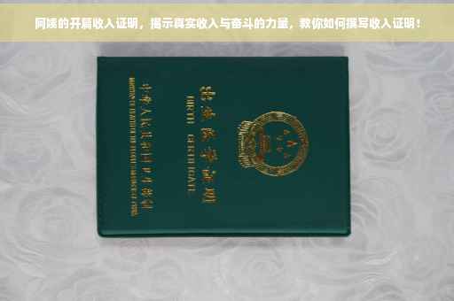 阿姨的收入证明不仅仅是一张纸,更是她多年努力的象征,在这份收入证明背后,隐藏着阿姨无数的汗水和付出,她用自己的实际行动证明了:只要努力奋斗,就一定能够实现梦想,她的故事让我们看到了真实与奋斗的力量,激励我们珍惜每一份收入证明背后的辛勤付出。