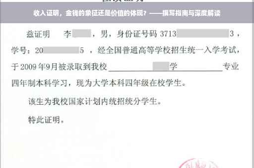 收入证明,作为个人经济状况的书面证明,无疑与金钱有着密切的联系,在求职、贷款、社交等场合,收入证明往往被视为衡量个人经济实力的重要标准,我们不应将收入证明仅仅看作是金钱的象征,更应关注其背后所代表的个人能力、经验和付出。