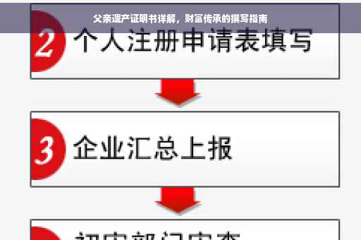 摘要:,,本文是关于父亲遗产证明书的详细解读,旨在指导读者如何正确撰写父亲遗产证明书,以便实现财富传承。文章介绍了遗产证明书的含义、目的和重要性,并详细阐述了编写遗产证明书的具体步骤和注意事项。通过本文的指导,读者可以了解如何合法、规范地处理父亲遗产,确保财富传承的顺利进行。
